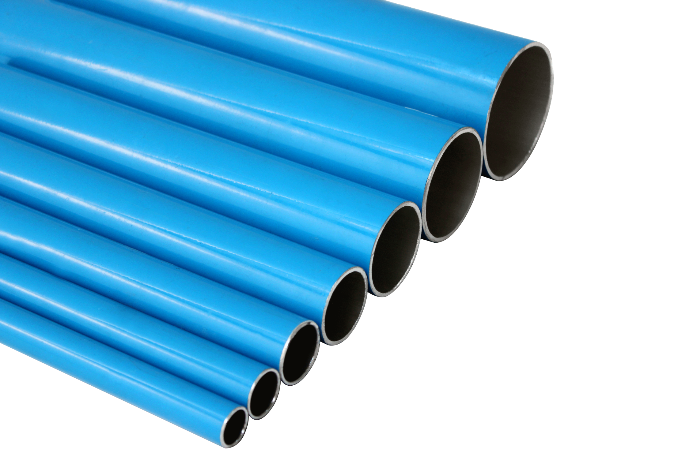 O tubo de liga de alumínio azul foi projetado para aplicações industriais. Está disponível em tamanhos do DN20 ao DN200 . O comprimento do tubo é fixado em 6000 mm.
